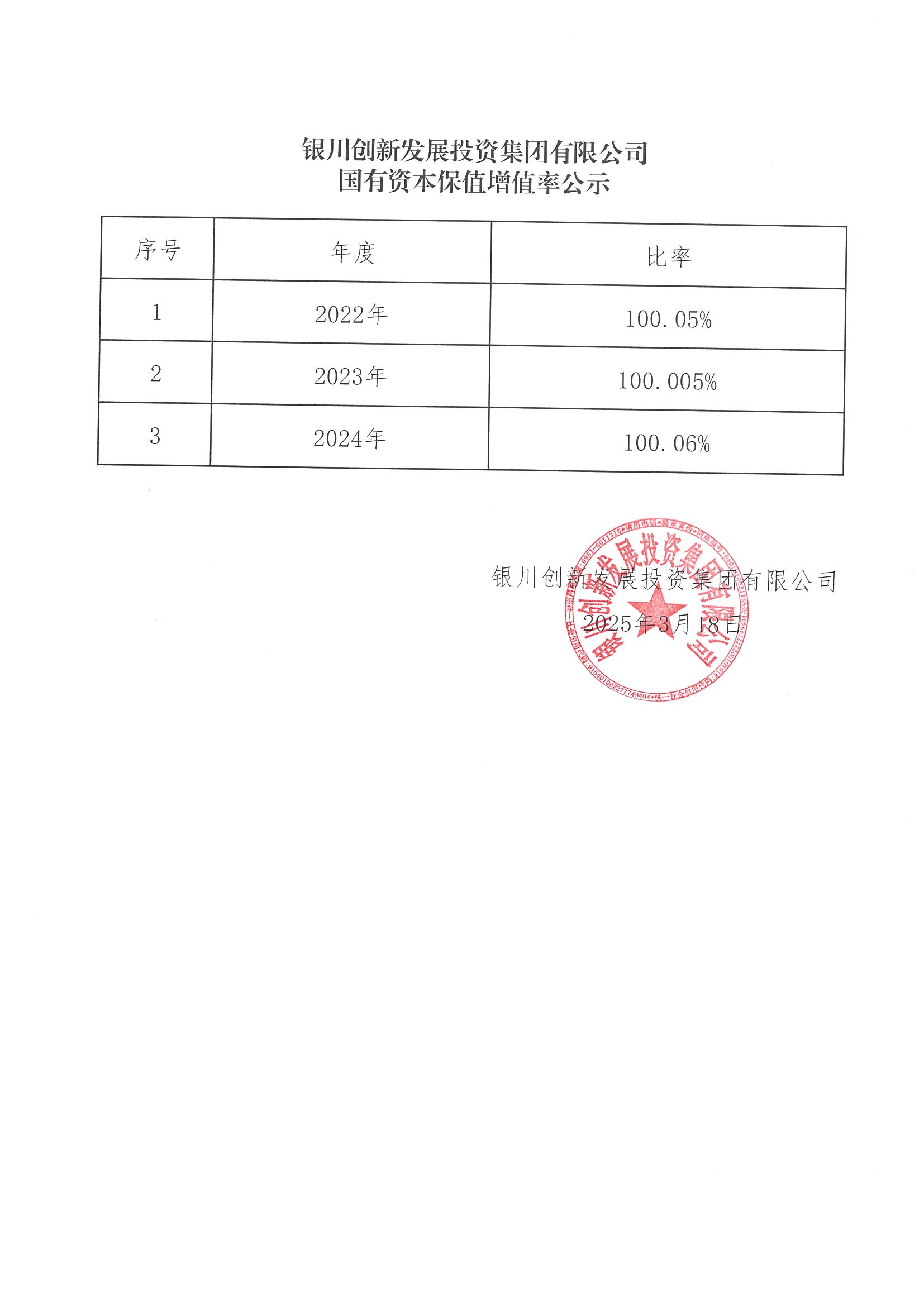 銀川創(chuàng)新發(fā)展投資集團(tuán)有限公司國有資本保值增值率公示